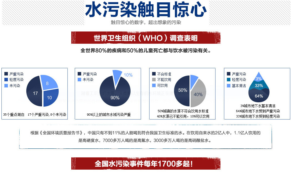 終端銷(xiāo)售凈水器客戶(hù)問(wèn)答:水中的很多污染物是看不見(jiàn)的,象細(xì)菌、病毒,現(xiàn)在經(jīng)濟(jì)發(fā)展這么迅速,工業(yè)廢水的無(wú)節(jié)制排放、生活垃圾在各個(gè)城市的大的填埋場(chǎng)聚集后,會(huì)產(chǎn)生很多垃圾滲透液,這些垃圾滲透液現(xiàn)在很多城市沒(méi)有處理,直接滲透到城市的地下水中,造成現(xiàn)在的地下水源污染相當(dāng)嚴(yán)重。 我們的自來(lái)水又經(jīng)過(guò)漫長(zhǎng)的...