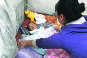 昨日上午11時(shí)許,記者來(lái)到了番禺區(qū)蓮花東路康定大道的蓮花山造紙廠宿舍樓。盤女士住在三座102房,一歲的小兒子小興剛剛嘔吐完,困倦地睡著了。盤女士說(shuō),小兒子已經(jīng)連續(xù)4天上吐下瀉。